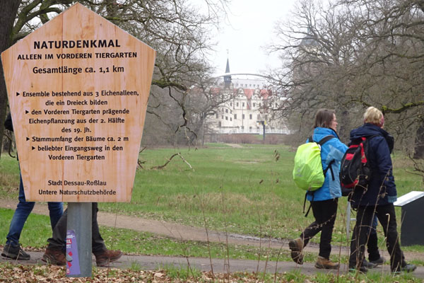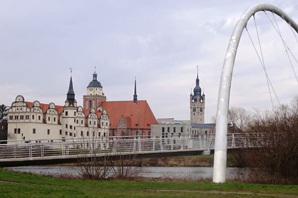 Wir sind nun im Lustgarten, links das Residenzschloss, durch’ s Lustgartentor voraus die Marienkirche mit Leopold I, besser bekannt als der „Alte Dessauer“. Die ehemalige Stadtkirche St. Marien wird zu Veranstaltungen genutzt, auch als Theater mit Publikumsliebling Dieter Hallervorden. Bleibt noch der Friedensplatz mit der „Bärenuhr“ und der Vier-Personen-Skulptur „Der Friede trägt das Leben“.