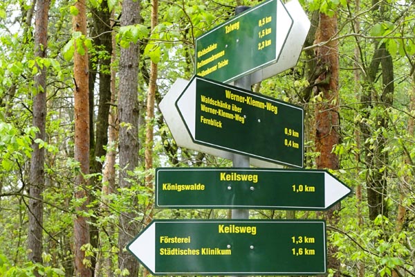 Vom Bahnhof aus folgen wir dem Marienthaler Fußweg zur Luisenstraße, dann durchs Wohngebiet Blumenweg nordwärts raus aus Zwickau. Mit 70 Höhenmetern geht’s auf dem Waldfußweg hoch zum Anton-Günther-Weg im Zwickauer Waldpark. Kurz verschnauft, dann runter zum Waldspielplatz „Klein Rappendorf“ am Weißenborner Bach. Gestaltet nach Art eines Christlichen Dorfes mit Kirche, Gemeindeamt und mehreren Spielhütten, dazu noch Riesenrutsche und Seilbahn. Einfach toll das Ganze, hier ist „Große Pause“.